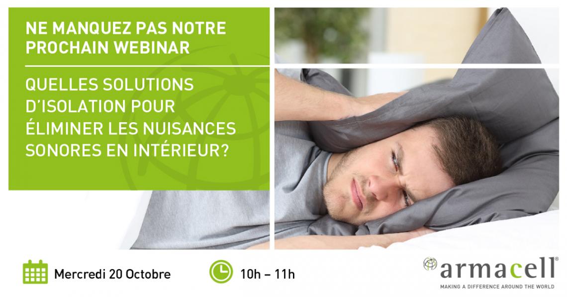 Participez au webinaire de notre partenaire Armacell le 20 Octobre à 10h sur les solutions d’isolations permettant d’éliminer les nuisances sonores en intérieur, présenté par Cyril Gambin, Directeur Technique d’Armacell France et Pascal Raphoz, Product Manager EMEA.