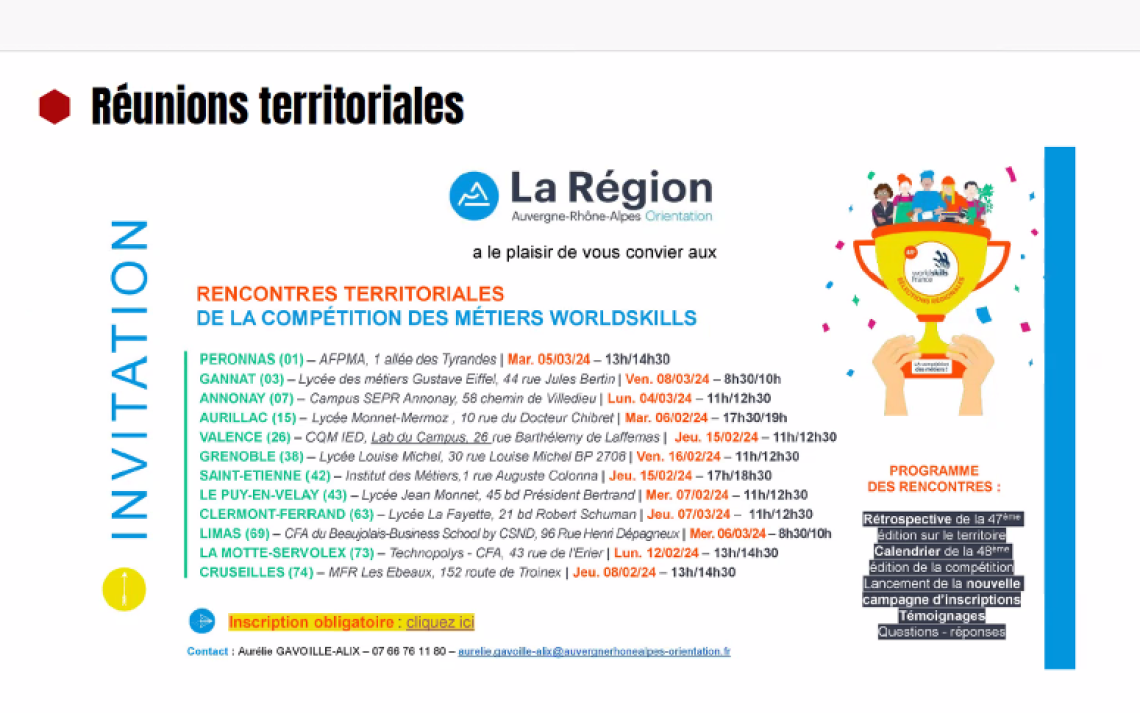 Worldskills Lyon 2024 : Inscription aux rencontres territoriales