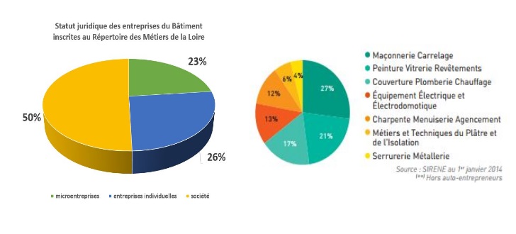 13.000 salariés sont employés par la moitié de ces entreprises. Le Bâtiment reste un secteur dans lequel de nombreux artisans travaillent seuls (48%), parfois accompagné de leur conjoint.