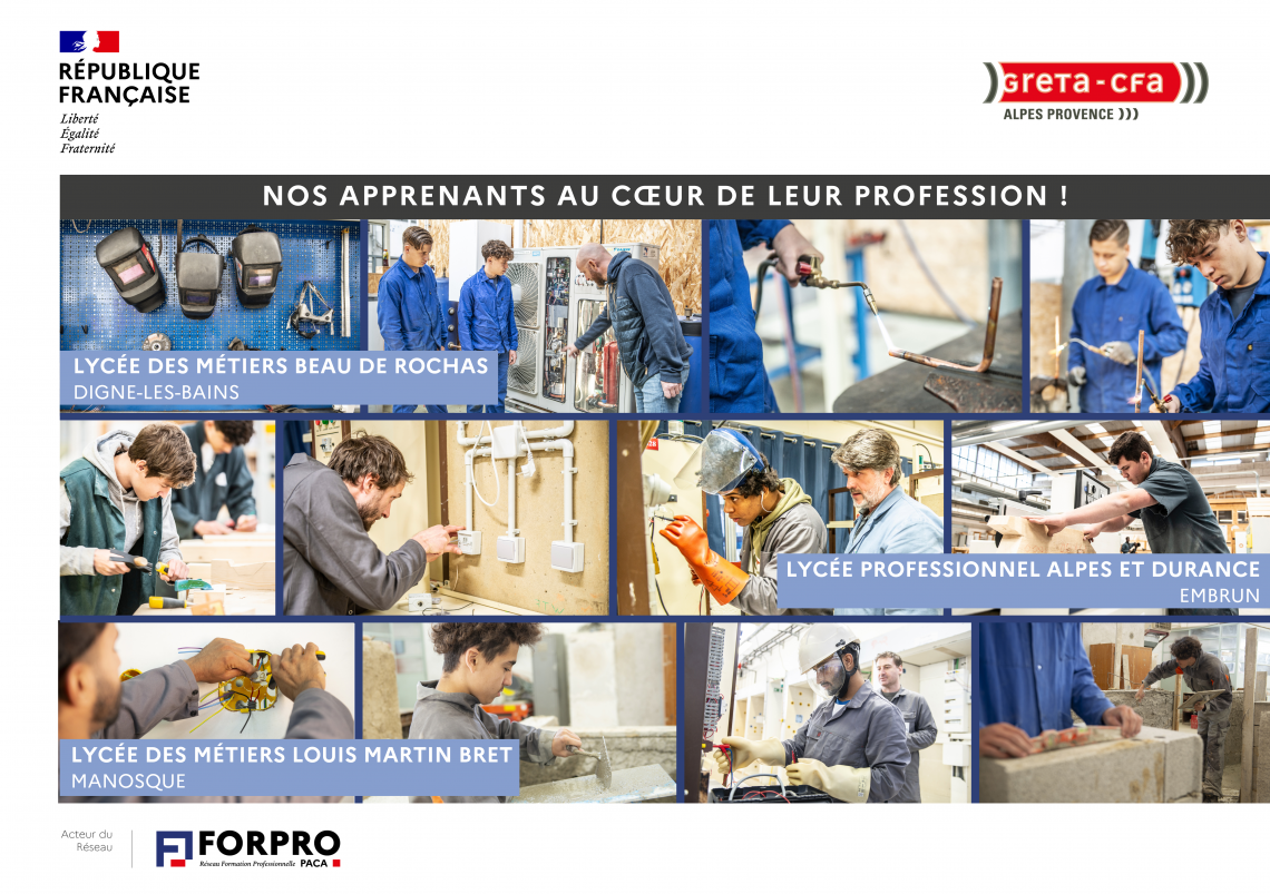 Présent depuis cinquante ans dans les Alpes de Haute-Provence et les Hautes-Alpes, le GRETA-CFA Alpes Provence est un centre de formation de référence ! Il propose une large gamme de formations professionnelles qualifiantes et diplômantes dans divers secteurs tels que BTP-Energie, Industrie, Tertiaire administratif et commercial, Hôtellerie-restauration, Santé médico-social, Sécurité, Transport et Logistique ou Animation Professionnelle. Toutes leurs formations sont éligibles à différents types de financement.