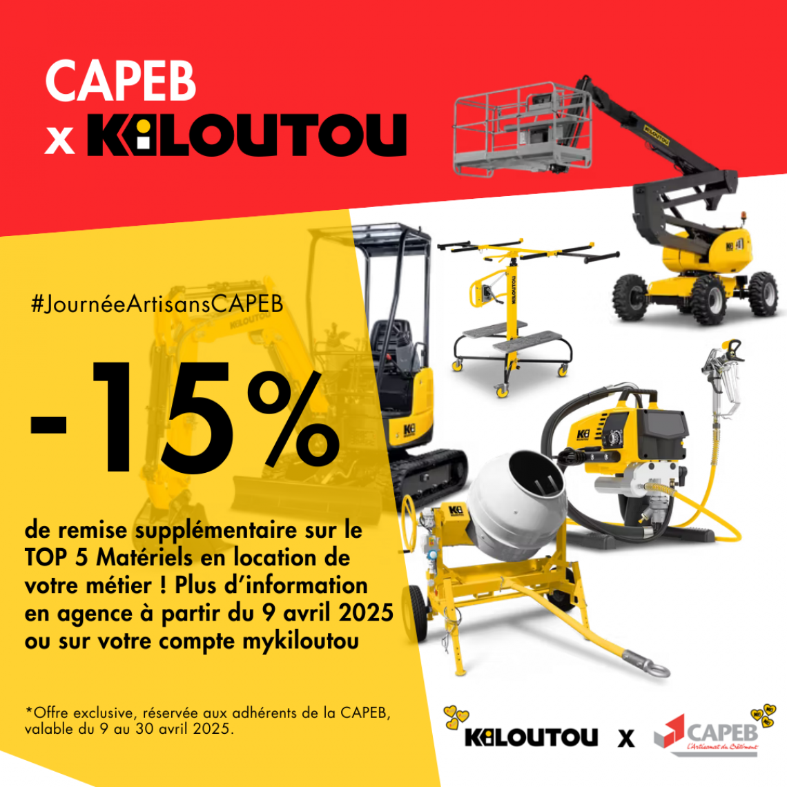 Kiloutou lance une grande opération dans le cadre de son partenariat avec la Capeb avec une offre exceptionnelle :