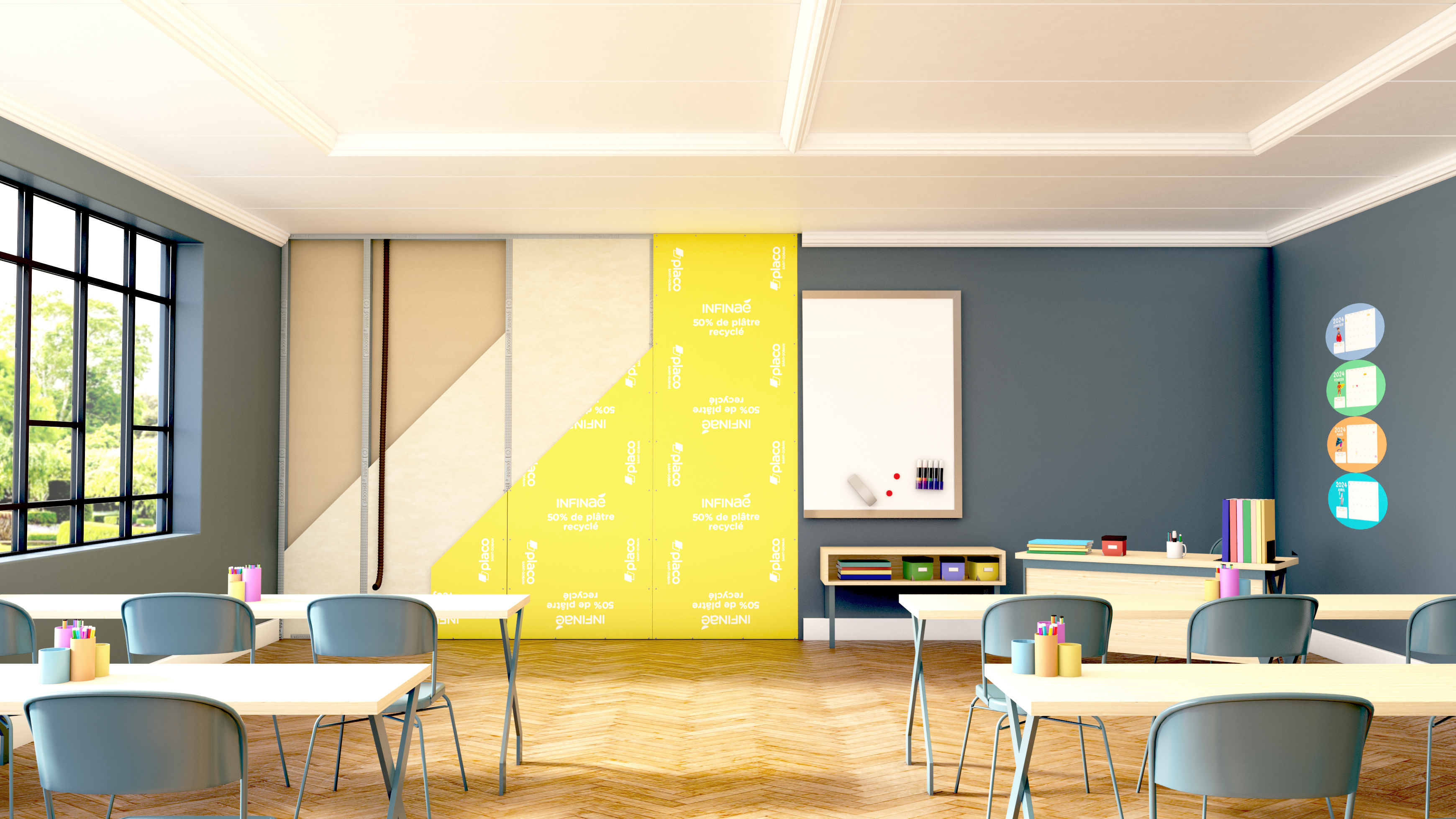 La 1e cloison éco circulaire du marché, destinée aux bâtiments non résidentiels (établissements scolaires et de santé, hôtels, bureaux, commerces…), en neuf comme en rénovation, qui ambitionne de devenir le futur standard su secteur.