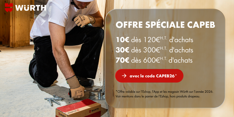 Et toujours vos promotions exclusives CAPEB et les promotions Würth France en cours en fin de newsletter !