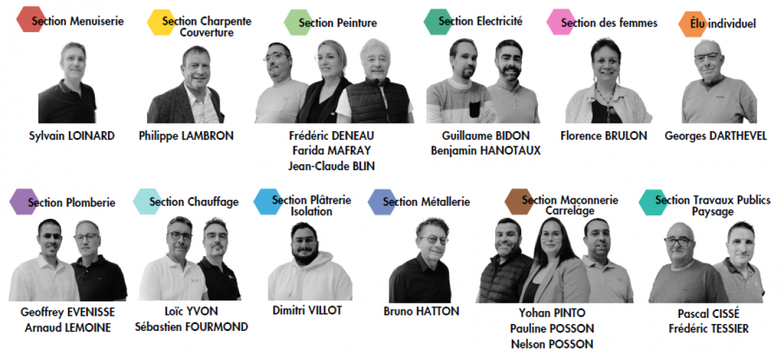 Au sein de la CAPEB Sarthe, les différents métiers du bâtiment sont représentés par des sections professionnelles. Ces sections professionnelles :