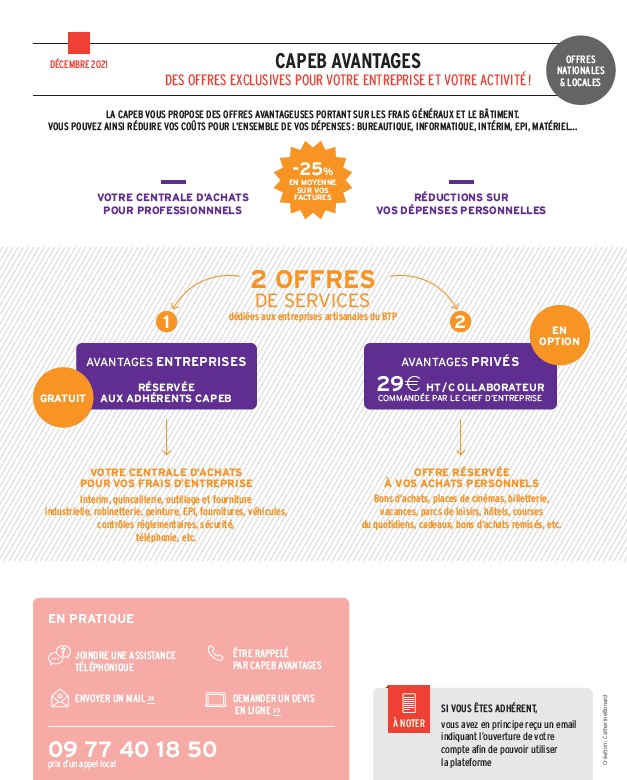 Bénéficiez des tarifs préférentiels pré négociés pour vous chez CAPEB AVANTAGES, demandez votre attestation CAPEB 2022 !