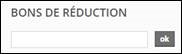 - Dans le récapitulatif de commande, dans la case BONS DE RÉDUCTION, saisir le code correspondant au type d’article à commander et cliquer sur OK.