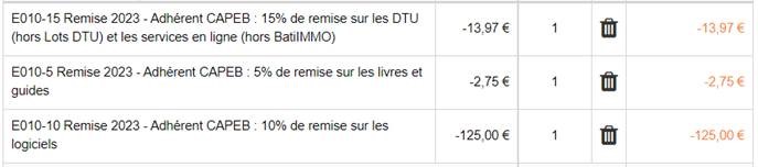 E010-15 : pour bénéficier de 15% de remise sur les DTU (hors LOTS DTU) et sur les services en ligne (hors Bati IMMO).