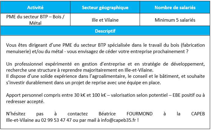 REPRENEUR A LA RECHERCHE D'UNE ENTREPRISE A RACHETER